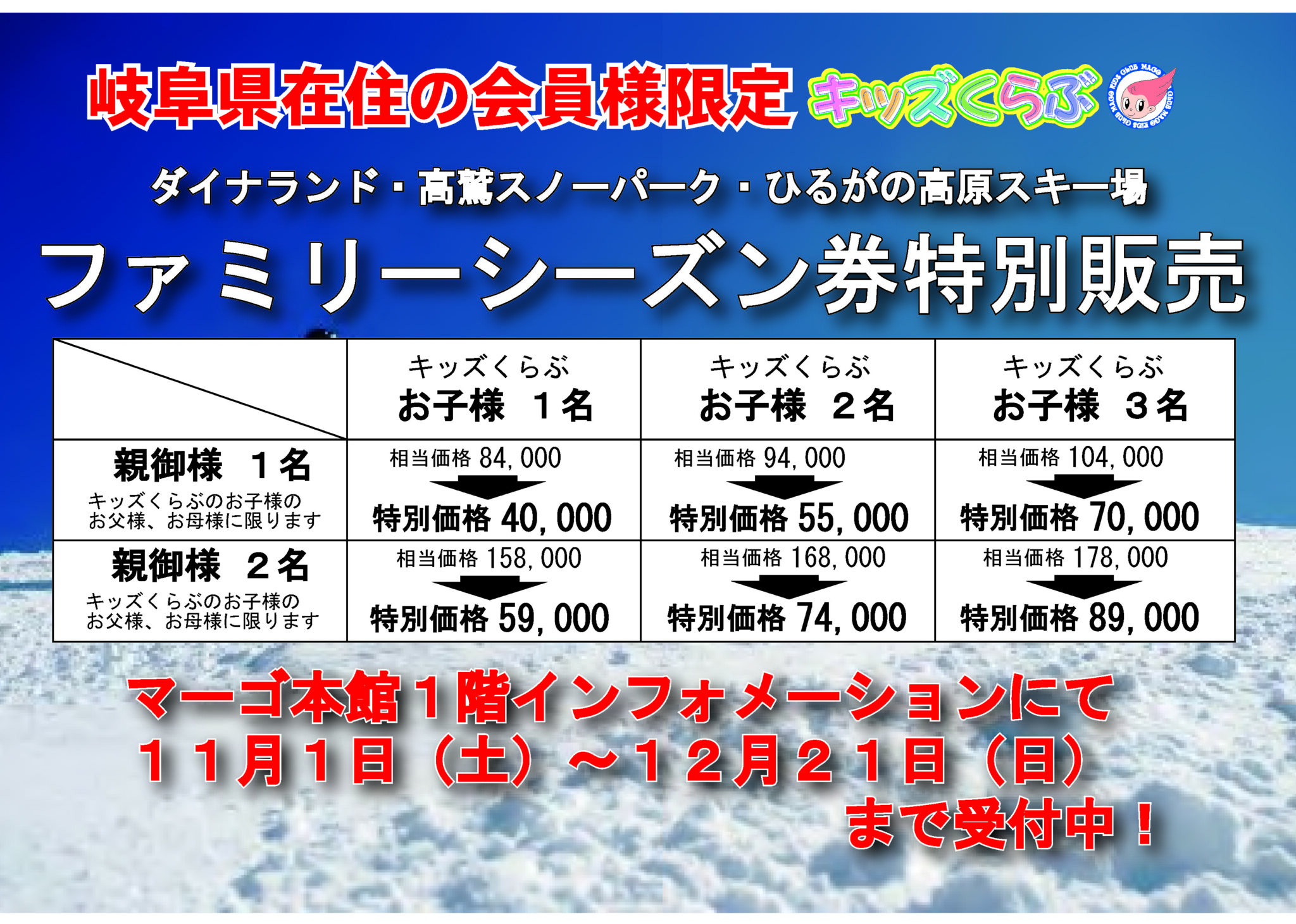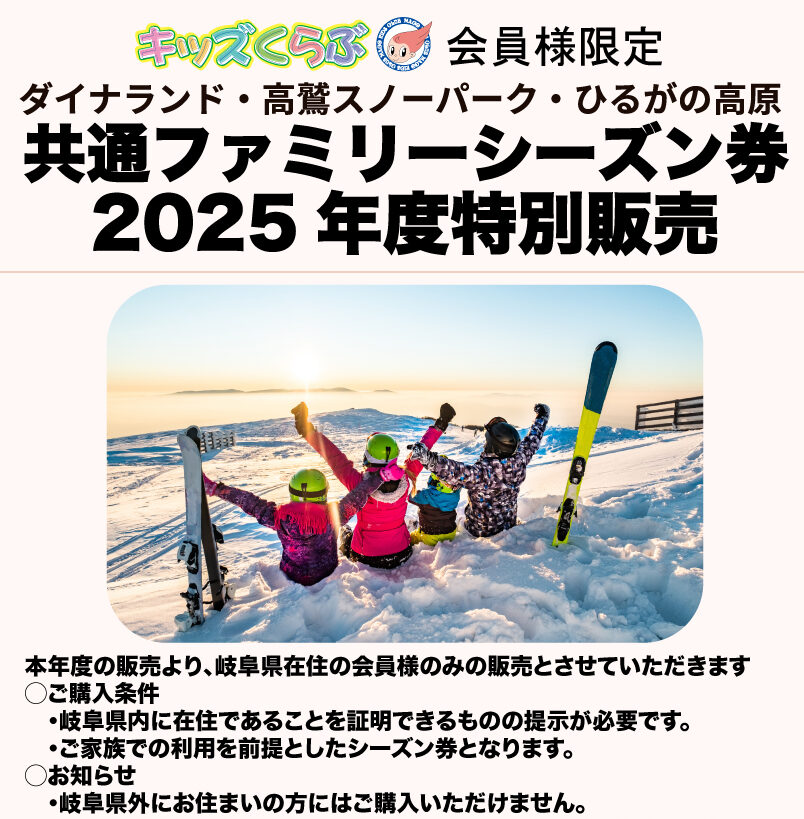 キッズくらぶ特別価格 スキーシーズン券についてお知らせ