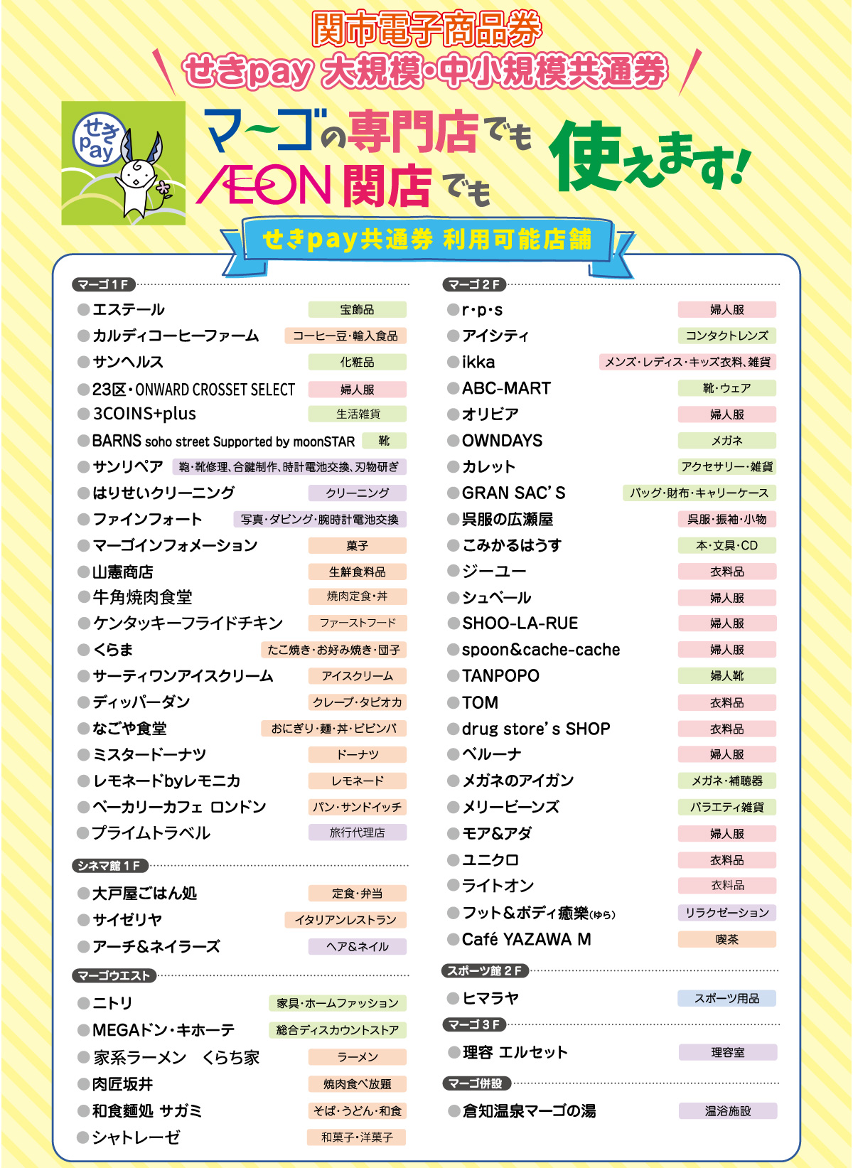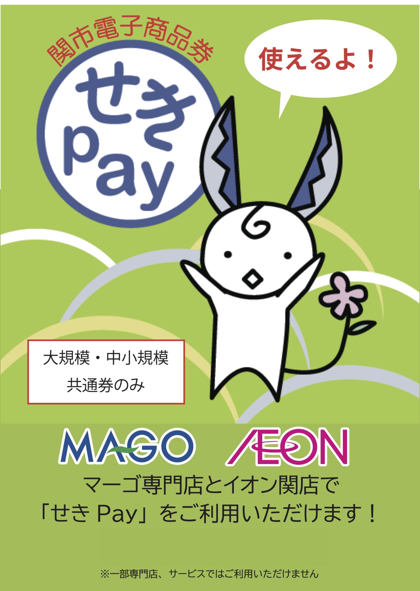関市電子商品券「せきpay」はマーゴとイオン関店でもご利用いただけます。