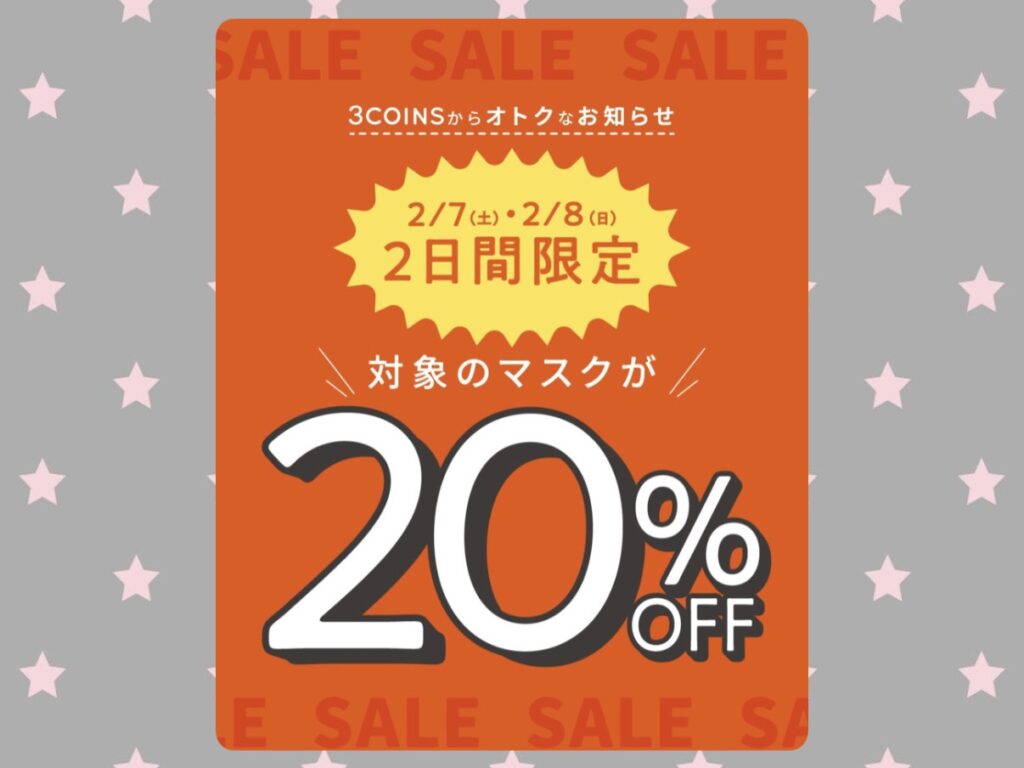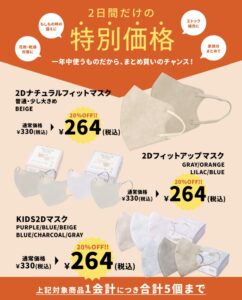 2日限定 マスク20%OFF