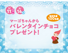 2/11(水祝)・2/14(土)マーゴちゃんからバレンタインチョコプレゼント!