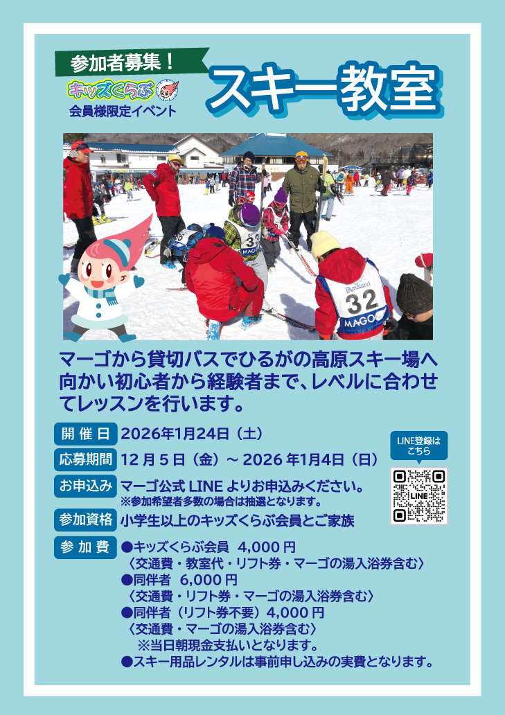 2026年1月4日(日)まで! キッズくらぶ会員様限定「スキー教室」参加者募集中!