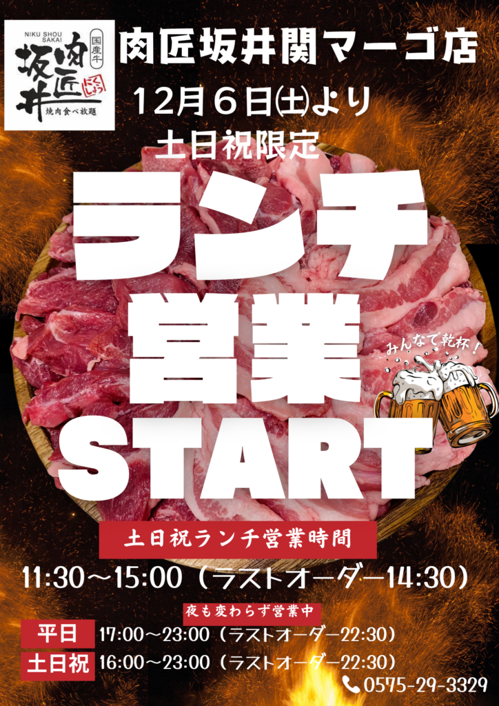 2025年12月6日(土)より 土日祝の昼営業スタート!