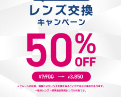 新しい季節を、クリアな視界で迎えましょう。2026年2月24日(火)〜3月19日(木)の期間限定で、レンズ 交換料金が今だけ50%OFFになるキャンペーンを実施します。他社でご購入された愛用のメガネも対象 です。度数が合わなくなったメガネや